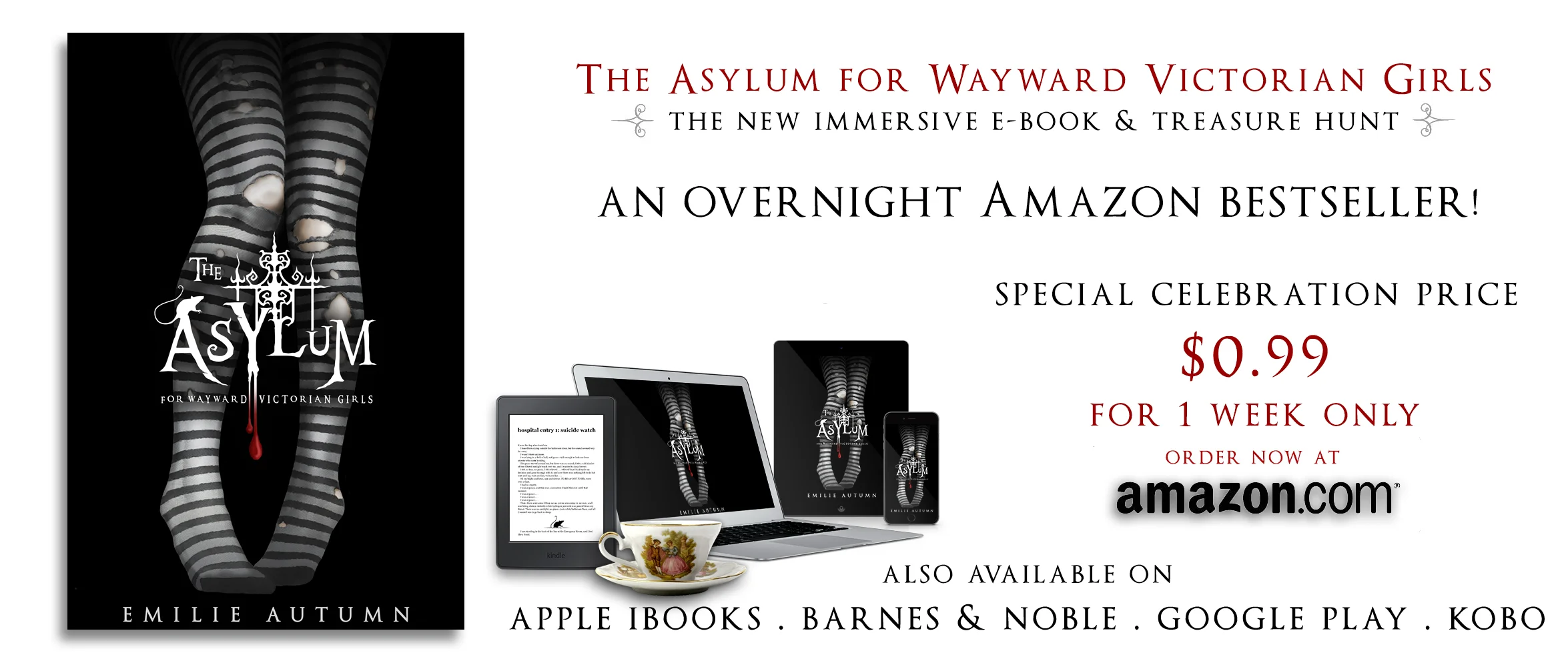 This beautifully designed eBook contains dozens of immersive elements including puzzle-filled illustrations, hidden links to new music, additional writings, and character backgrounds, atmospheric audio tracks to read along with, secret ways to get in contact with the Asylum's characters yourself, and, if you're clever enough to find the key, exclusive access to never-before-heard songs from the upcoming The Asylum for Wayward Victorian Girls: The Musical.